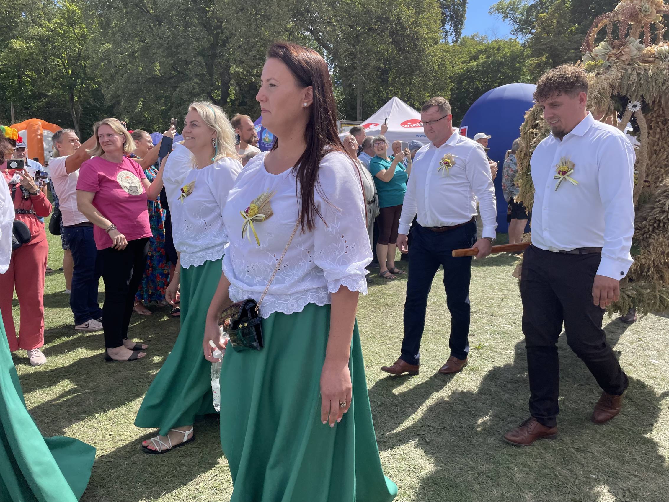 – Przygotowywałyśmy go pięć tygodni, bo trzy tygodnie zbierane były zboża, a dwa tygodnie je wiłyśmy. Pomagały nam panie z naszego koła, panie starsze i te młodsze. Każdy rocznik się załapał – mówi Monika Wójcik z KGW „Kogiel Mogiel".