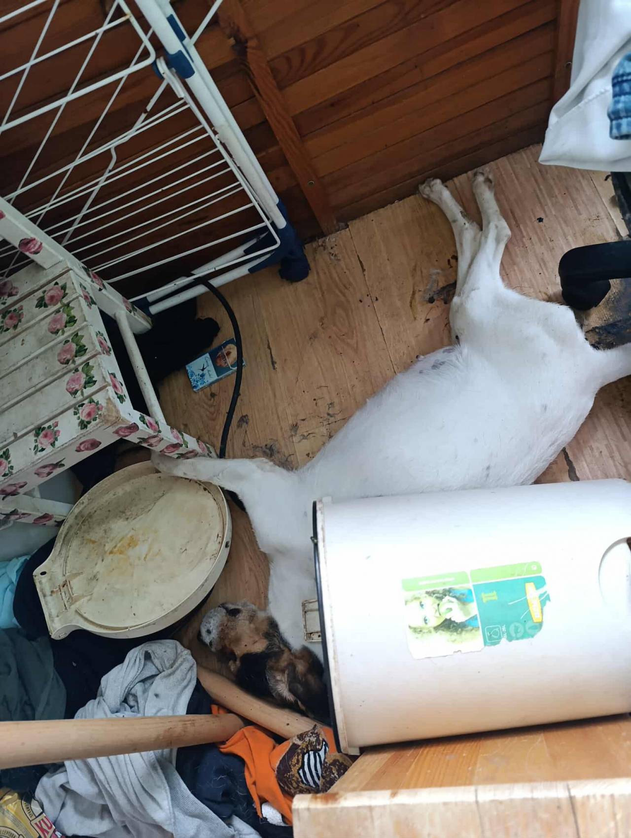 Do wstrząsającej interwencji doszło w miejscowości Nakielnica, w gminie Aleksandrów Łódzki (powiat zgierski). W jednym z mieszkań właścicielka pozostawiła dwa psy bez opieki. Jeden z nich – suczka – nie przeżyła. Drugi pies, kilkumiesięczny szczeniak, trafił pod opiekę aktywistów w stanie skrajnego wycieńczenia.