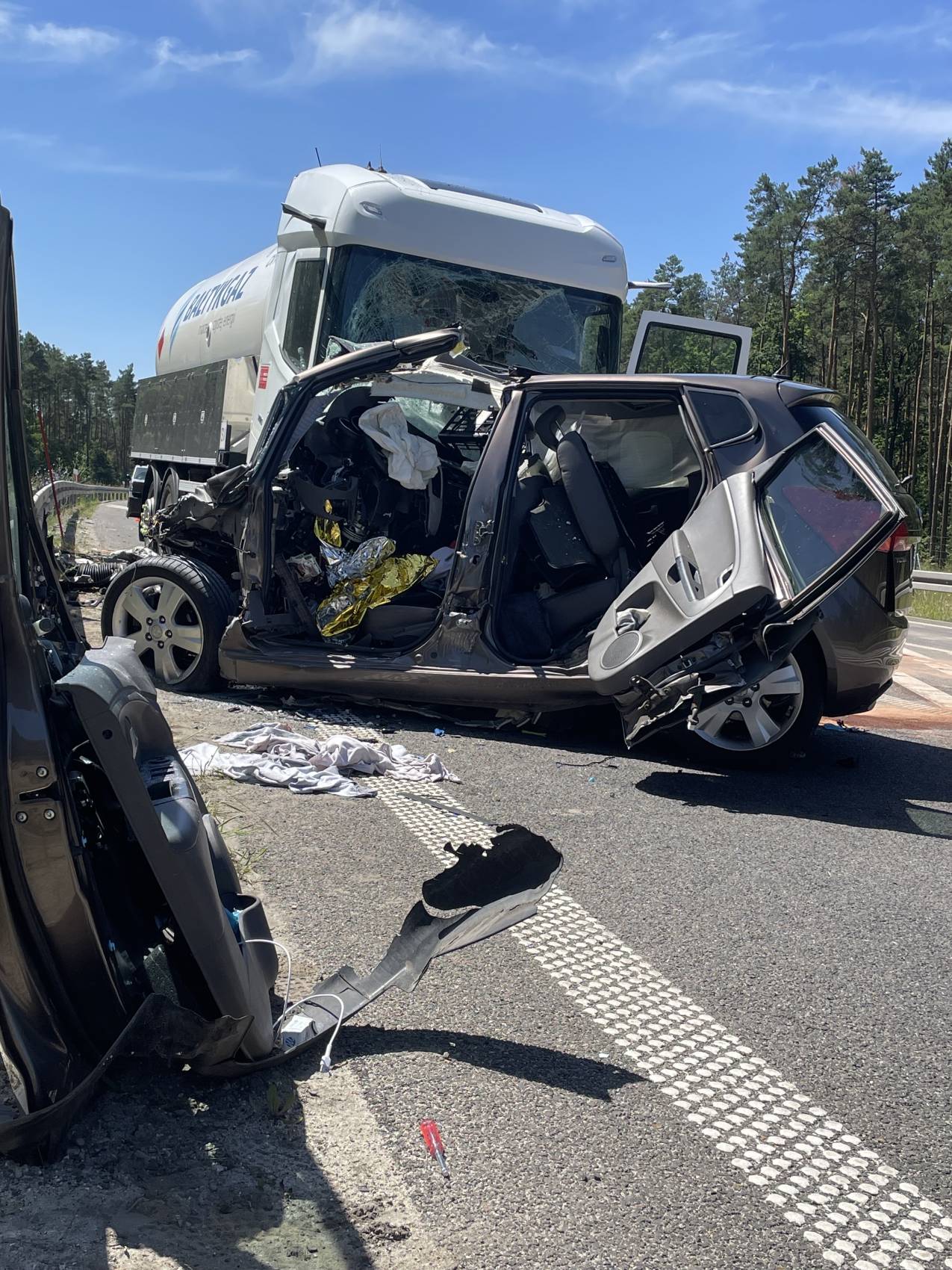 Droga jest nieprzejezdna i tak może być przez najbliższe godziny. Niezbędnym do udrożnienia trasy jest bowiem przepompowanie ładunku gazu do innego pojazdu i usunięcie pojazdów z jezdni. W tej chwili służby czekają na podstawienie kolejnej cysterny.