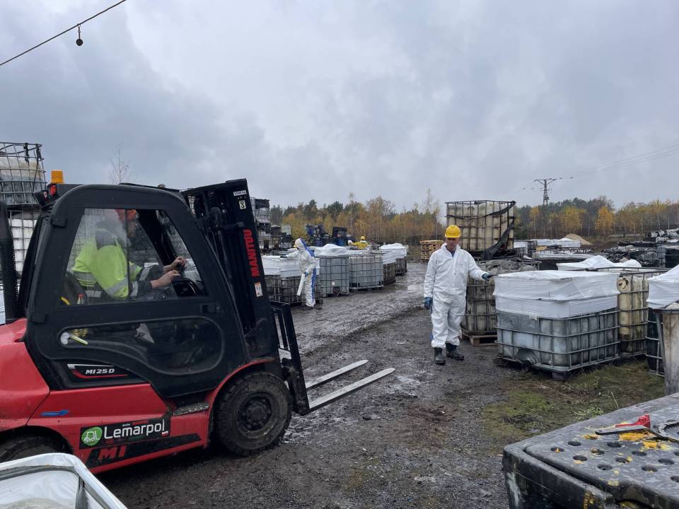 Zadanie realizuje firma Epichem Sp. z o.o., która każdego dnia planuje wywozić cztery transporty odpadów. Każdy z pojemników przed załadunkiem jest dokładnie sprawdzany, ważony i wstępnie badany pod kątem składu chemicznego, co ma zapewnić pełną kontrolę nad całym procesem i wyeliminować ryzyko skażenia środowiska.