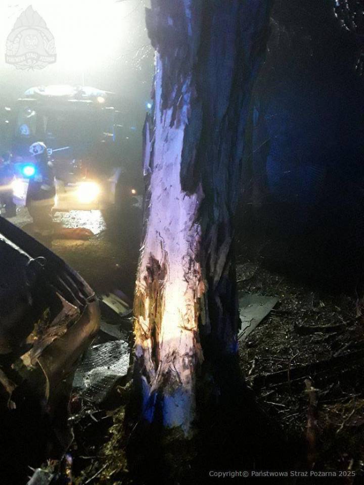 W akcji ratunkowej uczestniczyły dwa zastępy Państwowej Straży Pożarnej, dwa zastępy Ochotniczej Straży Pożarnej oraz jeden zespół ratownictwa medycznego. Samochód, którym poruszał się młody mężczyzna, został bardzo poważnie zniszczony.